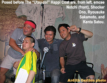 The event ran just long enough that I missed the last train--Yo-san took tremendously good care of me, hunting down an Internet cafe where I could hang out and even sleep until the morning's first train--but I wouldn't have left "Utau-zo!" early for anything!
